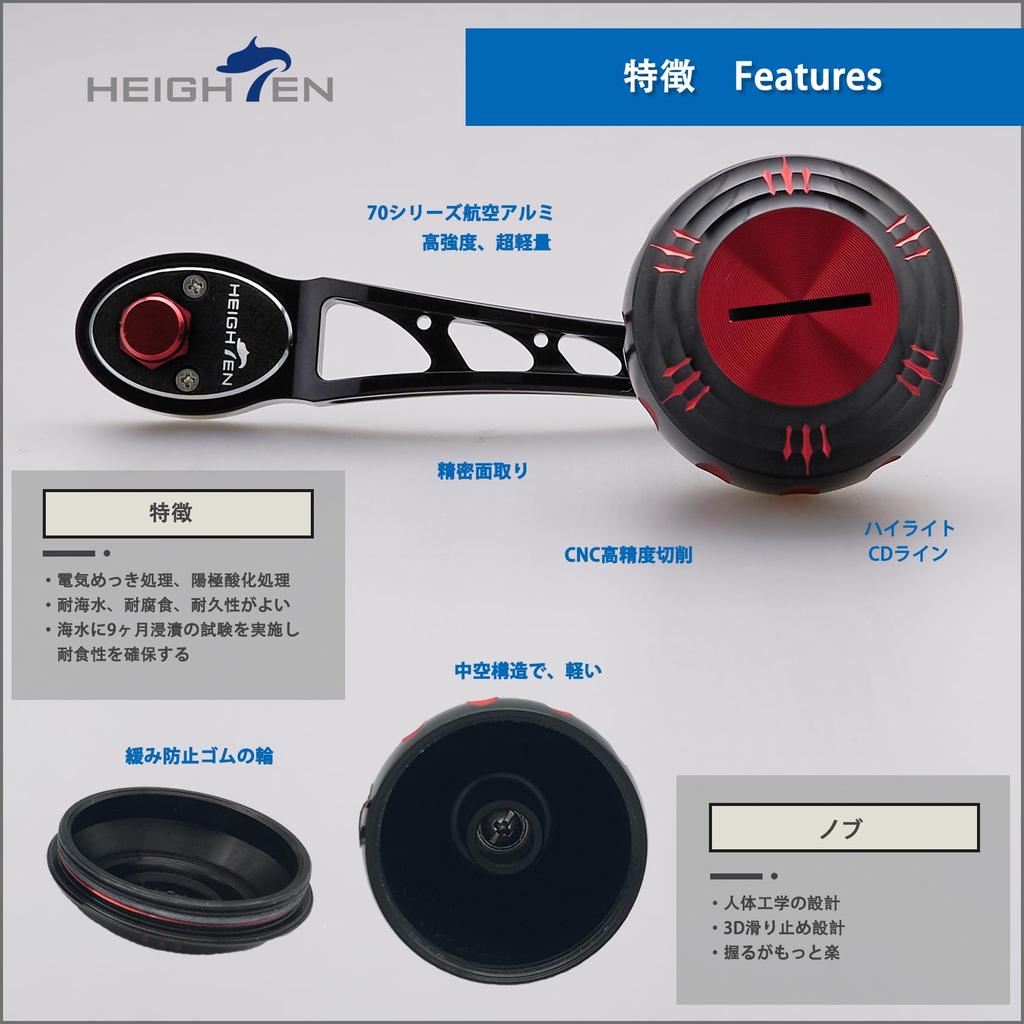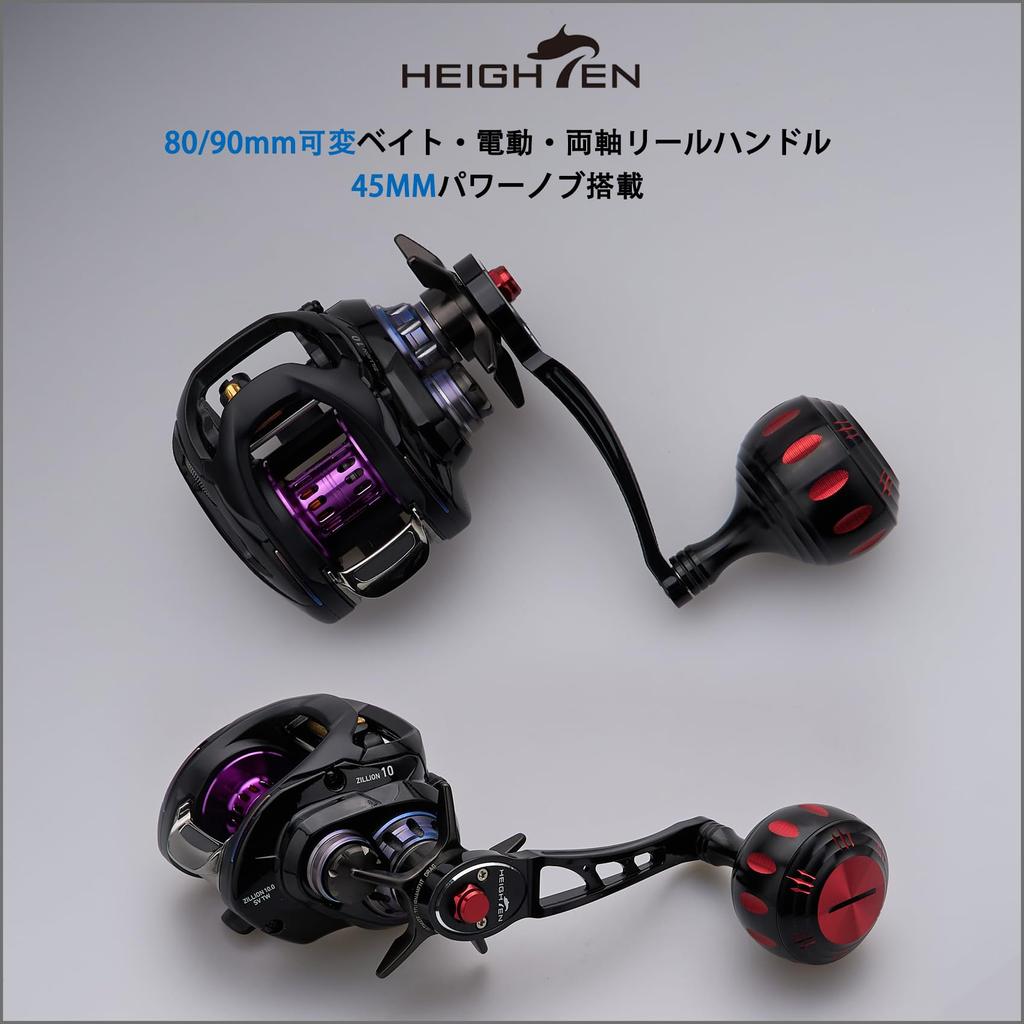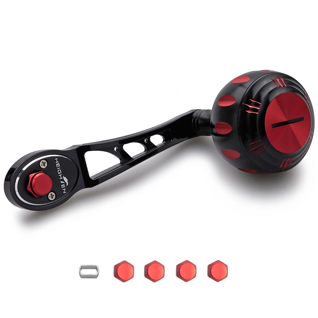 HEIGHTEN Reel Handle with 45mm Handle Compatible with and Abu Baitcasting Ach Harmer Series 80/90mm Knob, Shimano, Daiwa, Reels, (Black & Red) (199)