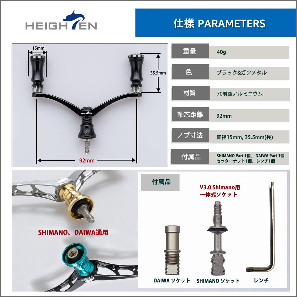 Features: 92mm aluminum alloy handle with a 15mm diameter lightweight knob. Overall lightweight. Size: 92mm handle shaft distance, 15mm knob diameter. Total weight: 40g. Material: 70 series aviation aluminum alloy. Reel handle included: One Shimano socket, one Daiwa socket, and one wrench. Compatible models: Suitable for replacing Shimano and Daiwa threaded spinning reel handles. Comes with a 60-day warranty (excluding accessories) and unconditional returns and exchanges within 60 days. The compatible reel handle models are not limited to those listed below. If you have any questions, please contact us by email.