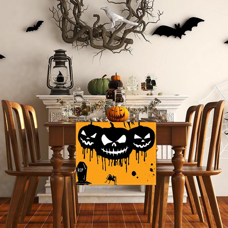 1pc Orenge Halloween Table Runner Punpkin Spooky Pattern Dustproof Durable Tablecloth for Halloween Themed Party Decoration