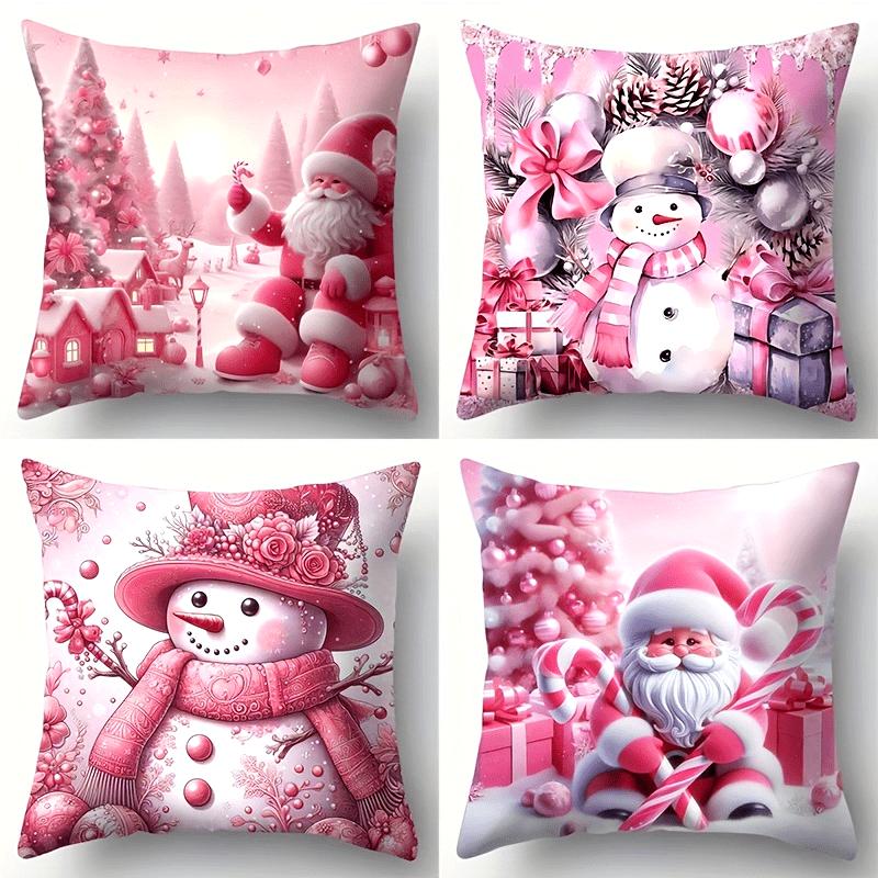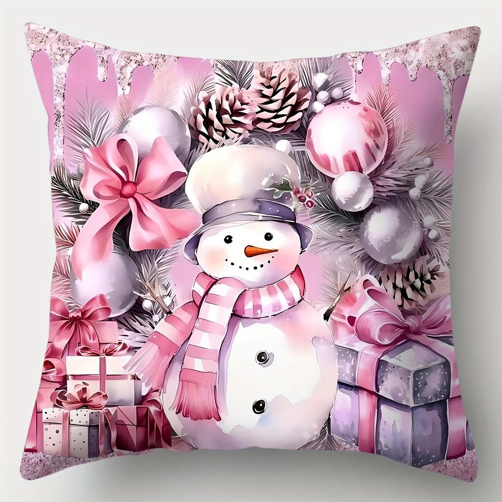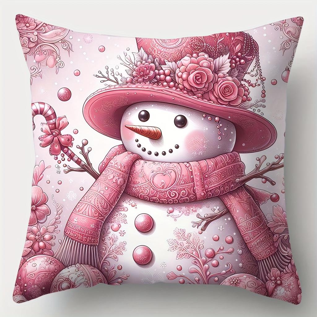 1 шт. Розовая рождественская наволочка Милый снеговик Санта-Клаус Прочная наволочка 2025 Новинка для украшения дома Рождество Новый год