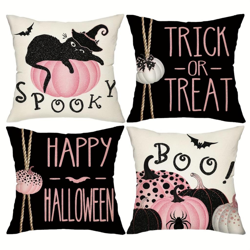 1pc Pink Halloween Cushion Cover Cute Cat Pumpkin Printed Washable Cover Halloween Themed Party Living Room Bedroom Decoration