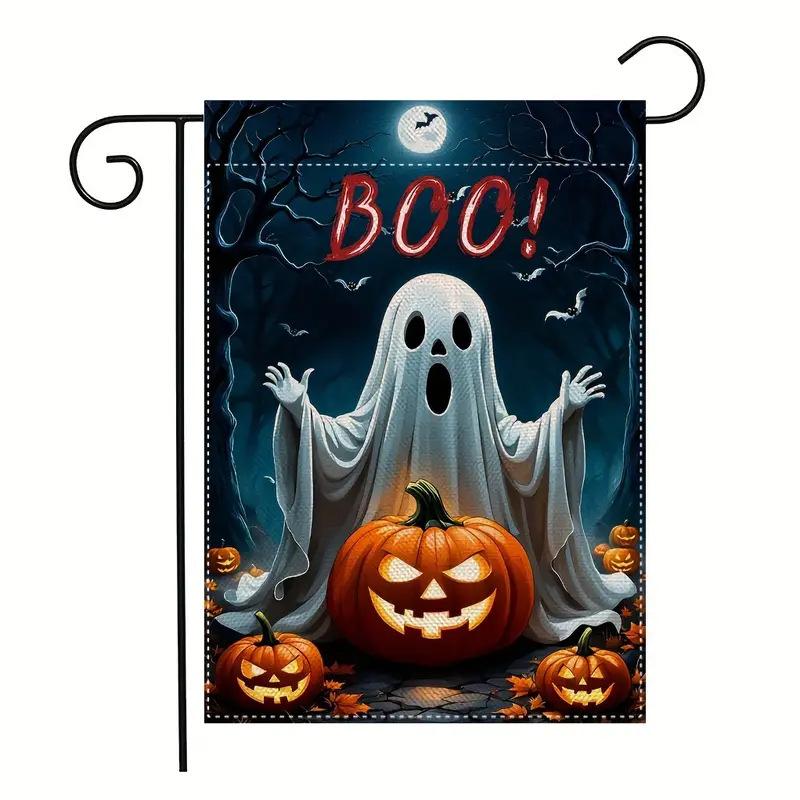 1pc Happy Halloween Garden Flag Cute Ghost Pumpkin Print Suitable for Halloween Yard Outside Decoration No Flag Pole 12X18 Inch