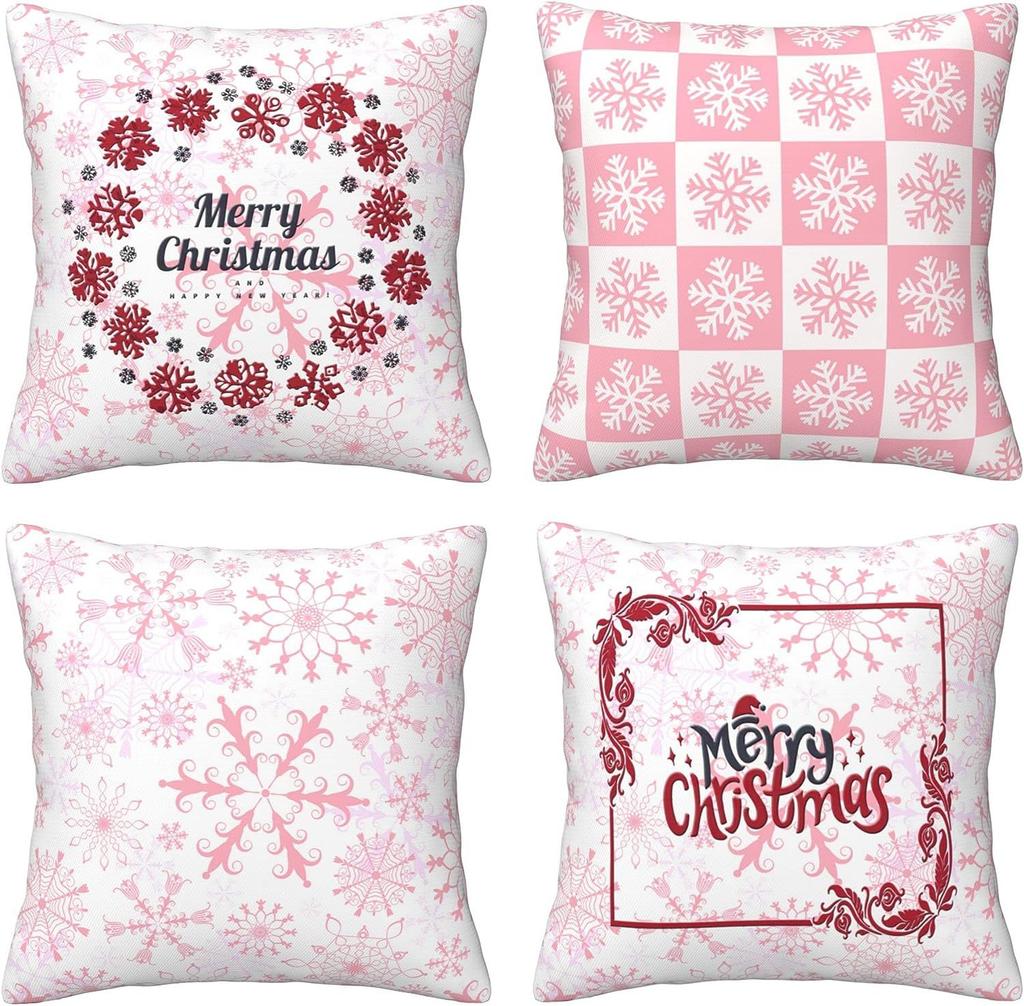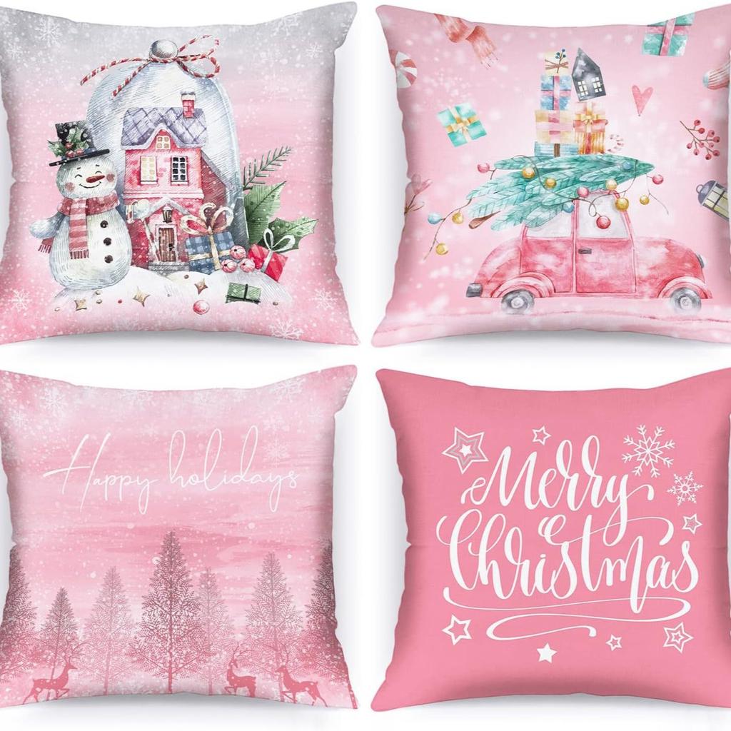 4pcs Pink Christmas Cushion Cover Santa Claus Deer Candy Durable Cover 2025 New for Home Ornament Xmas New Year Decoration