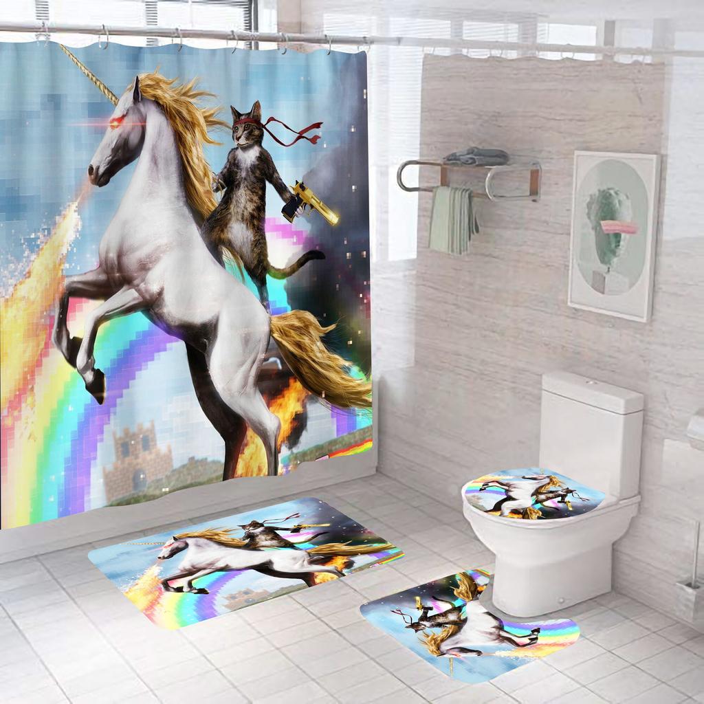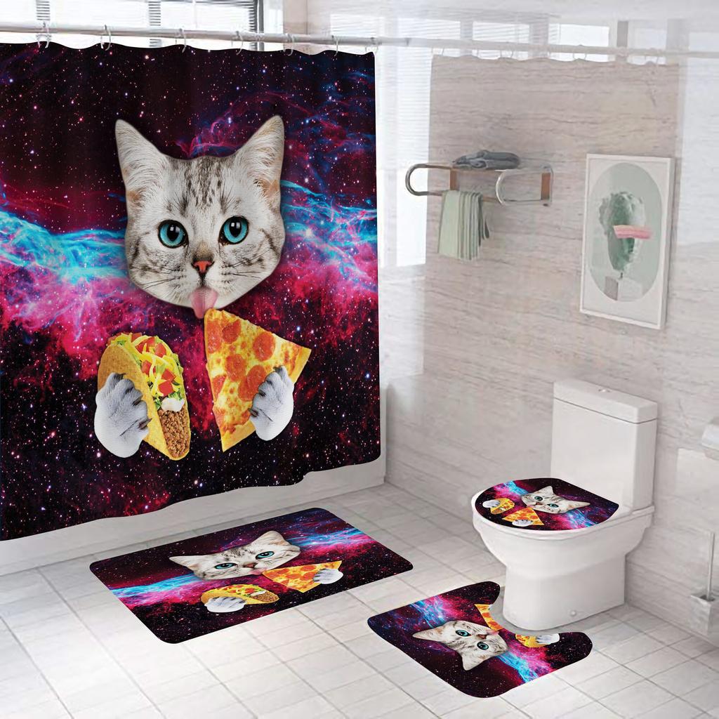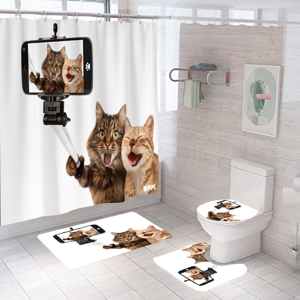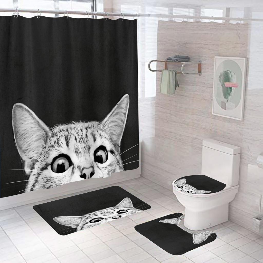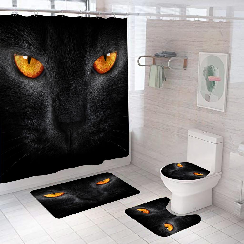 Мультяшный Кот Набор Занавесок для Душа Животное Черный Водонепроницаемый Ванна Туалет Крышка Сиденья Коврик Нескользящий Коврик Декор для Ванной Комнаты Чехол