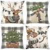 1pc Grey Cushion Cover Snowman Deer Tree Printed Durable Cover 2025 New for Home Ornament Xmas New Year Christmas Decoration