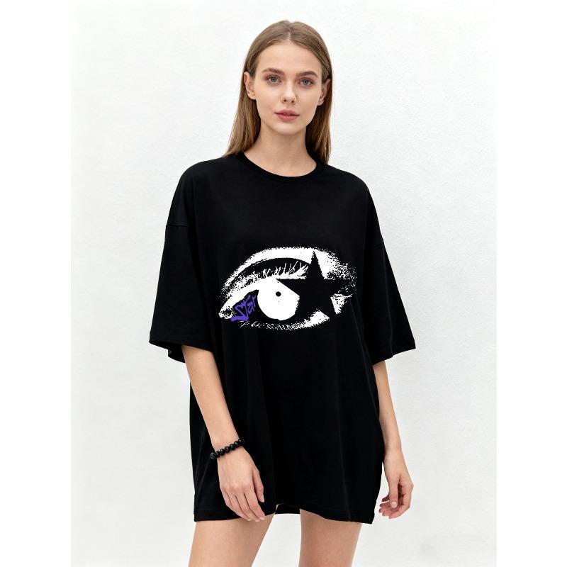 Футболка оверсайз с графическим принтом «Черный глаз», повседневная