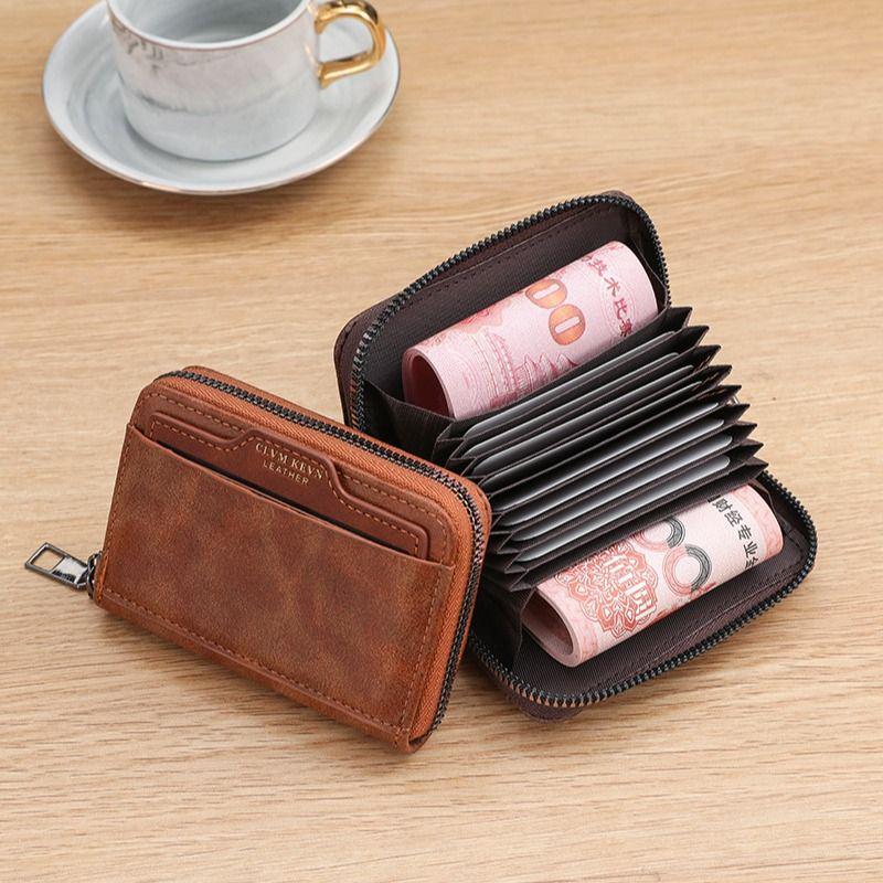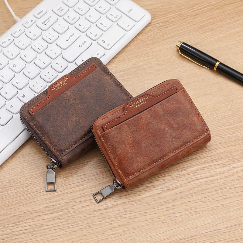 Ретро Мужской Многофункциональный Кошелек с Держателем для Карт и Водительского Удостоверения и Молнией