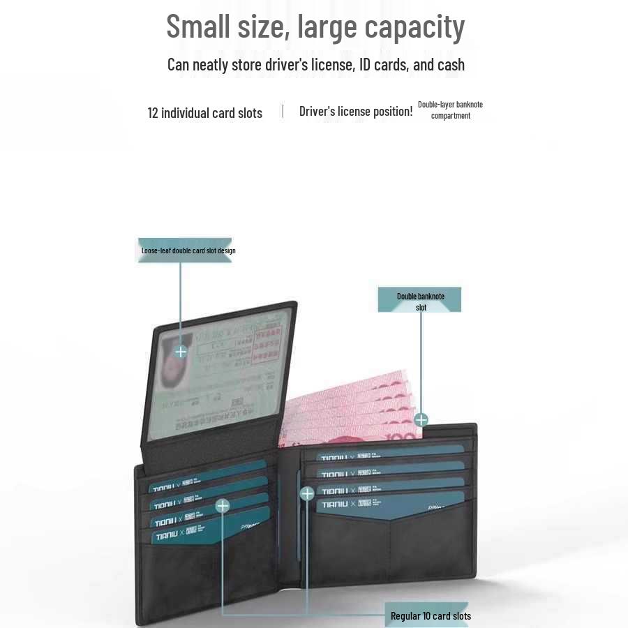 Натуральная кожа мужской кошелек: Противоугонный, Антимагнитный, Большая вместимость, с держателем для водительского удостоверения и карт.