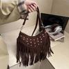 Замшевая сумка-пельмень с кисточками и заклепками - Осень/Зима 2025 Бохо через плечо — купить товар онлайн с бесплатной доставкой по всему миру!