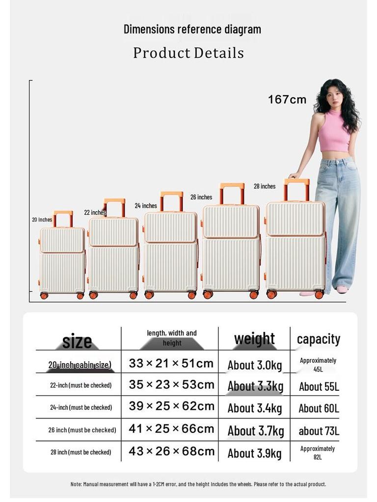 Женский 28-дюймовый чемодан для ручной клади с передним открыванием, большой вместимости, прочный чемодан на колесиках с универсальными колесами
