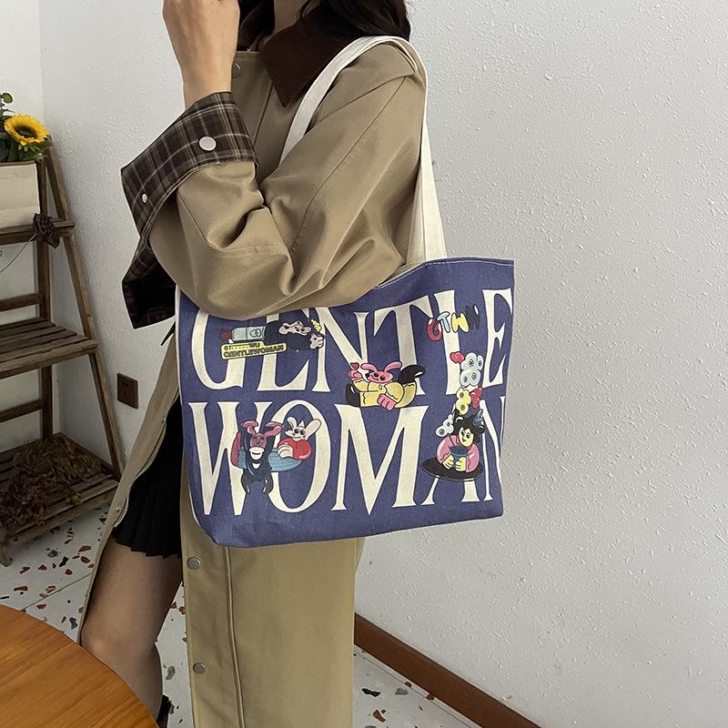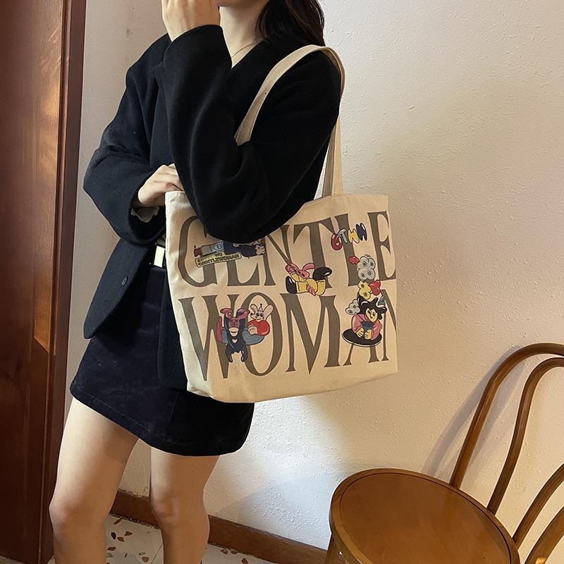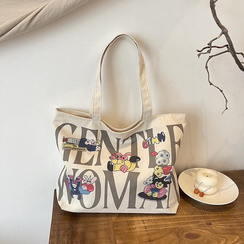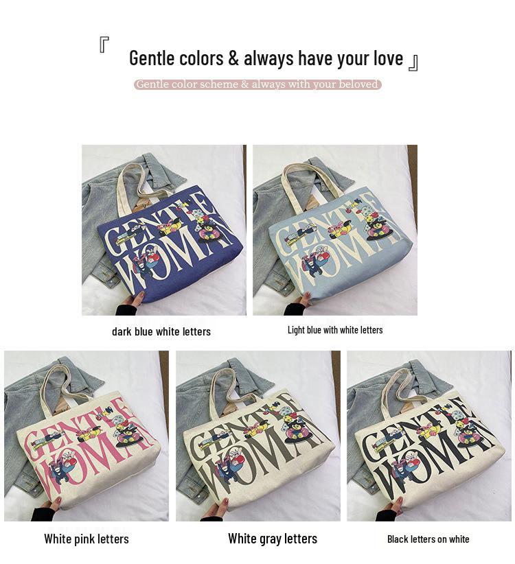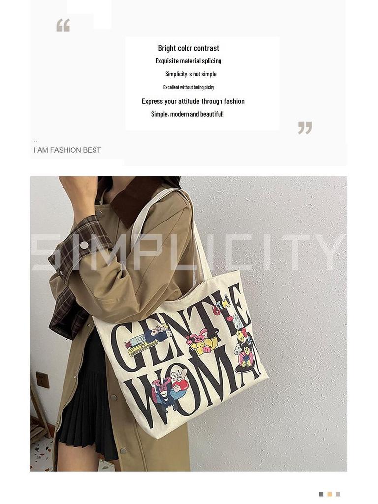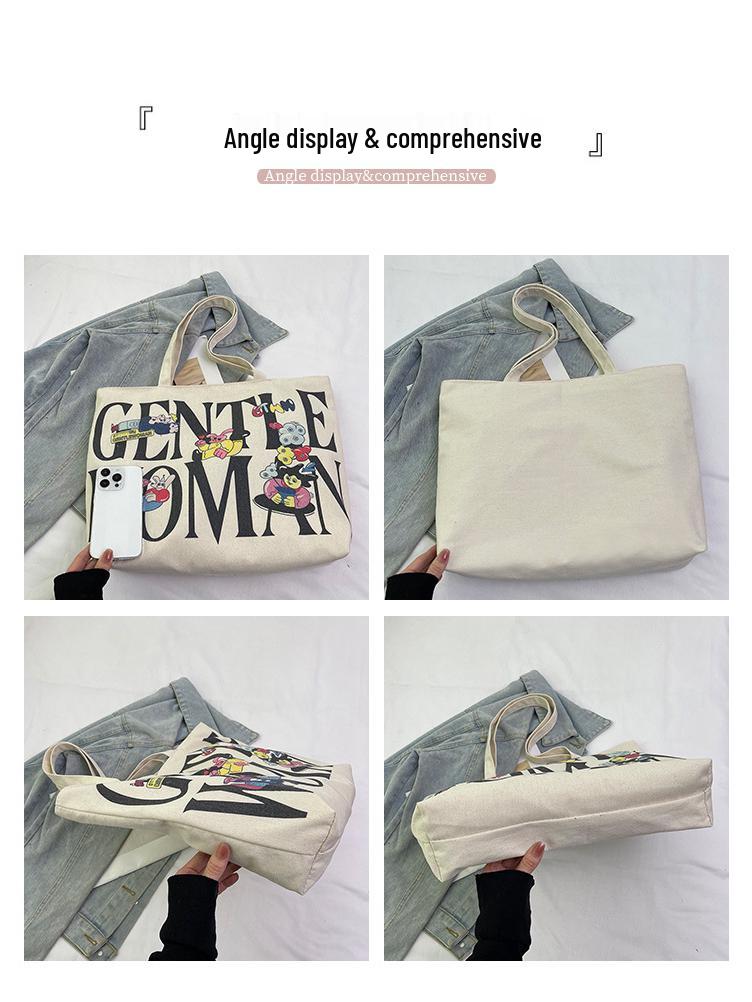 Женская холщовая сумка-тоут большой вместимости с горячим тиснением - Повседневная наплечная сумка для студентов