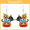 Themed Halloween Cat Pumpkin Skull And Dog Pattern Women Acrylic Earrings
