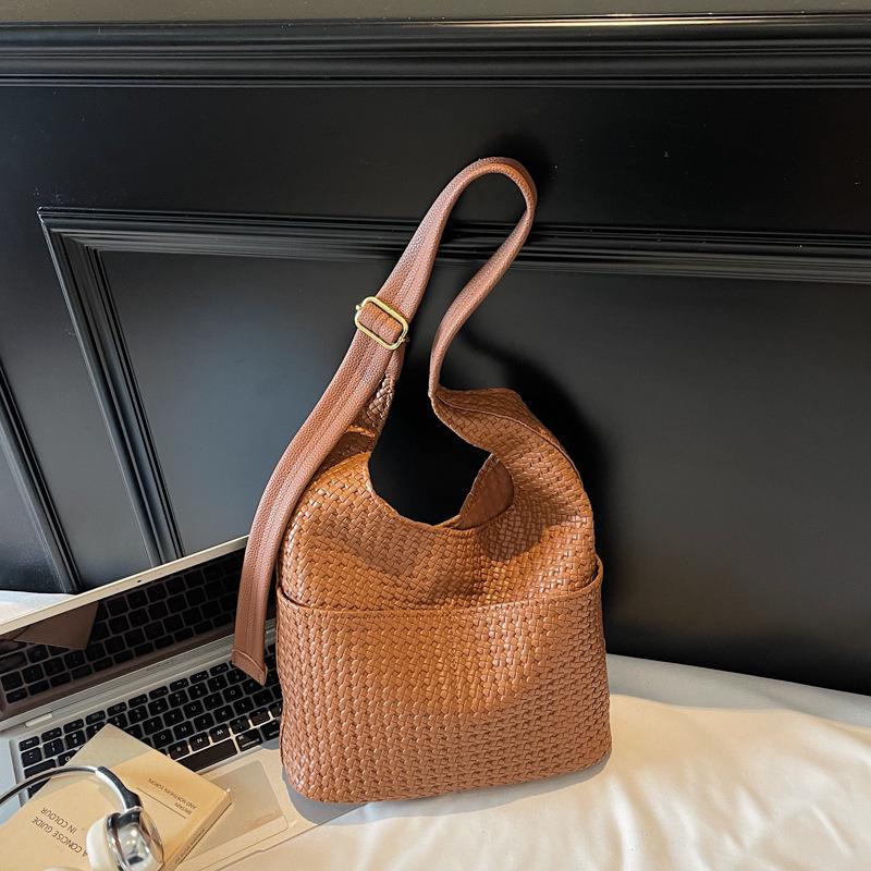 2025 Retro Solid Color Large Capacity Soft Leather Shoulder Bag