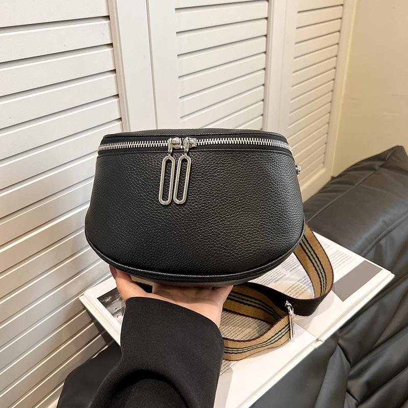Women's Genuine Leather Saddle Crossbody Bag, 2025 Style, Double Zipper, Top Layer Cowhide, Small Shoulder Bag. — купить товар онлайн с бесплатной доставкой по всему миру!