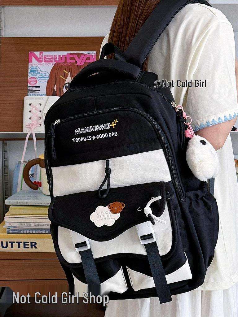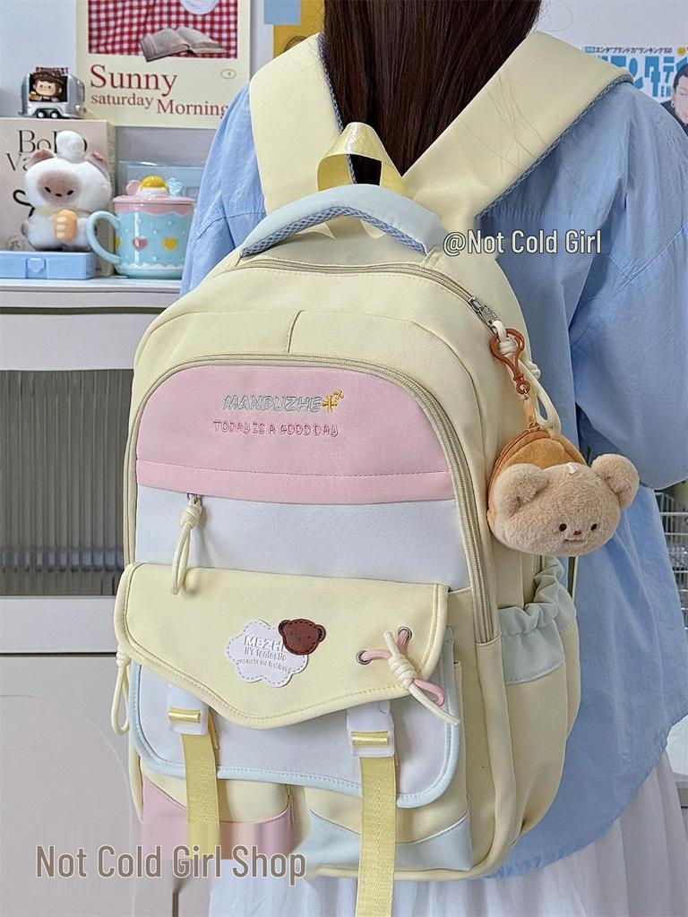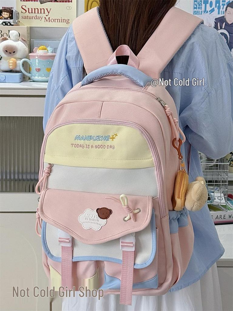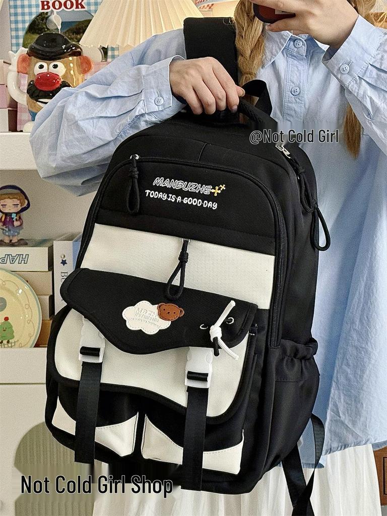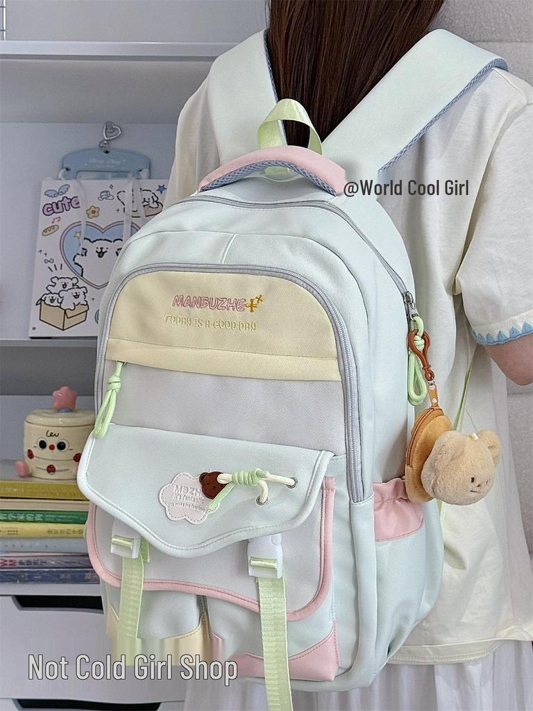 Color Block Student Backpack - Large Capacity, Lightweight, Double Shoulder Bag for Girls in Middle and High School