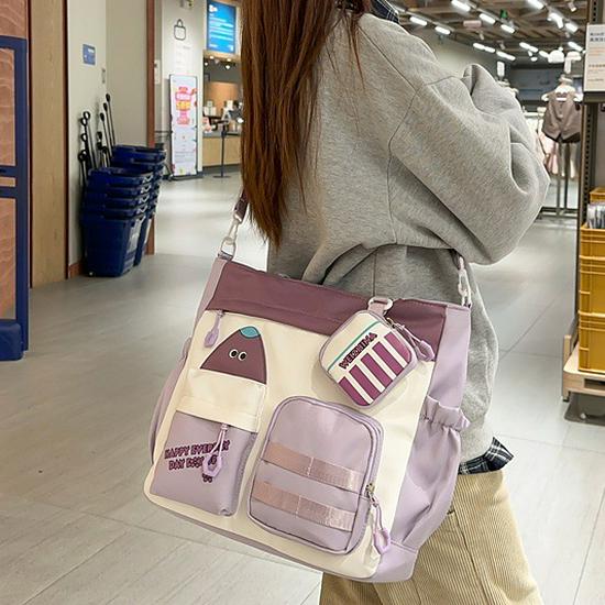 Сумка-тоут кроссбоди в корейском стиле с цветными блоками большой вместимости для студентов
