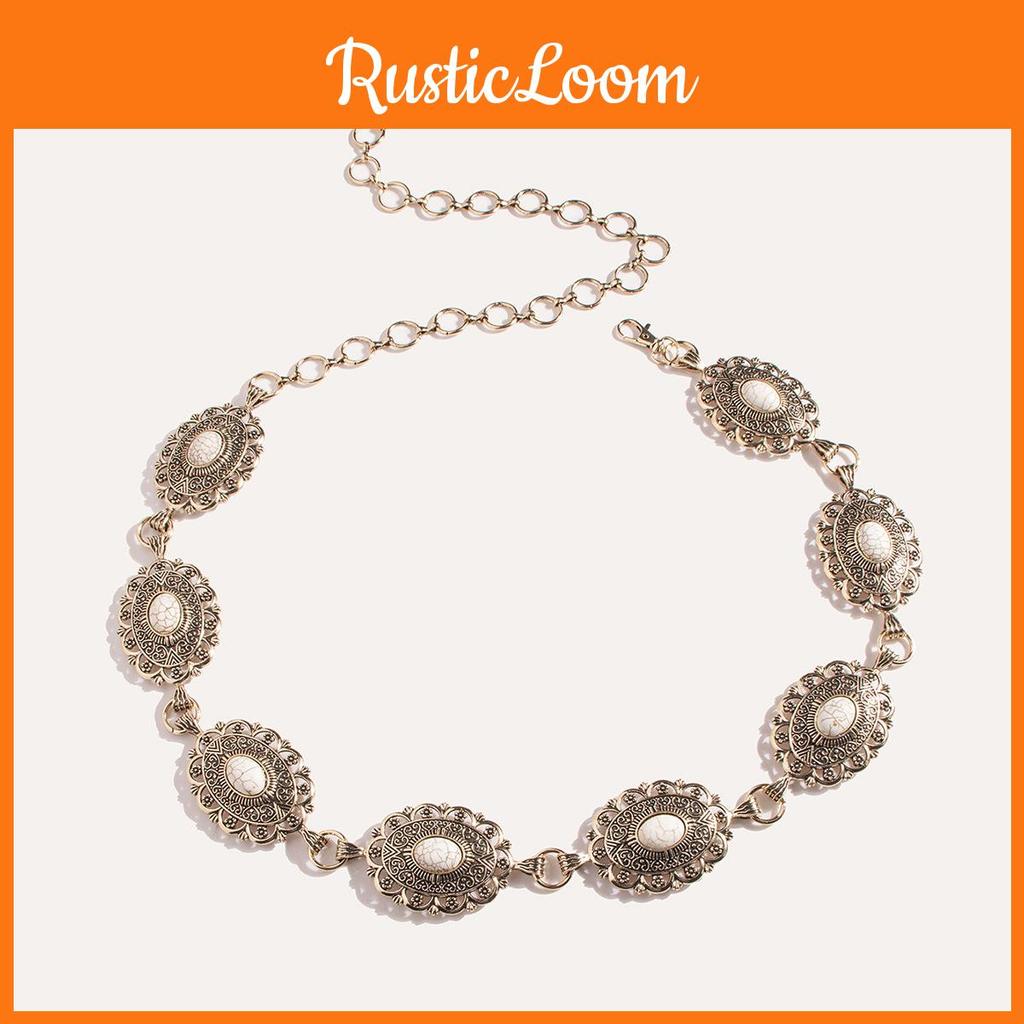 Эта изысканная металлическая поясная цепочка отличается замысловатыми резными деталями и бирюзовыми акцентами, добавляя винтажную элегантность модным ансамблям.. Изготовлено из прочного металла, подходит для взрослых женщин. Идеально подходит для дополнения богемных или исторических костюмов, его можно носить в любое время года.. Для сохранения блеска протирайте мягкой тканью.