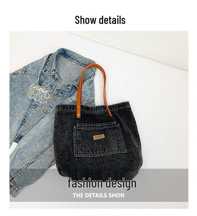Универсальная джинсовая сумка-тоут и кроссбоди в корейском стиле - 2025, Большая вместимость, Женский повседневный тренд для поездок.