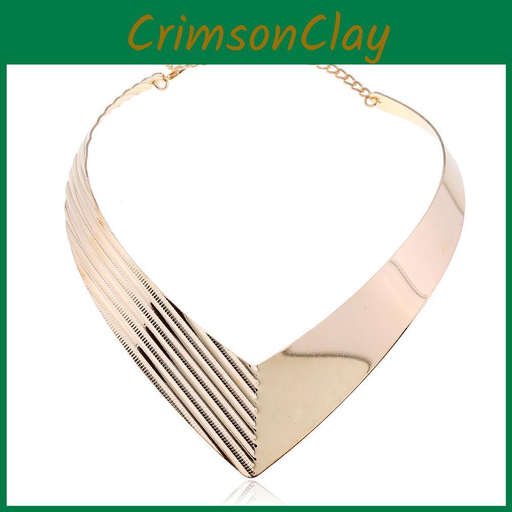 Металлическое женское колье V-образной формы с модным геометрическим дизайном