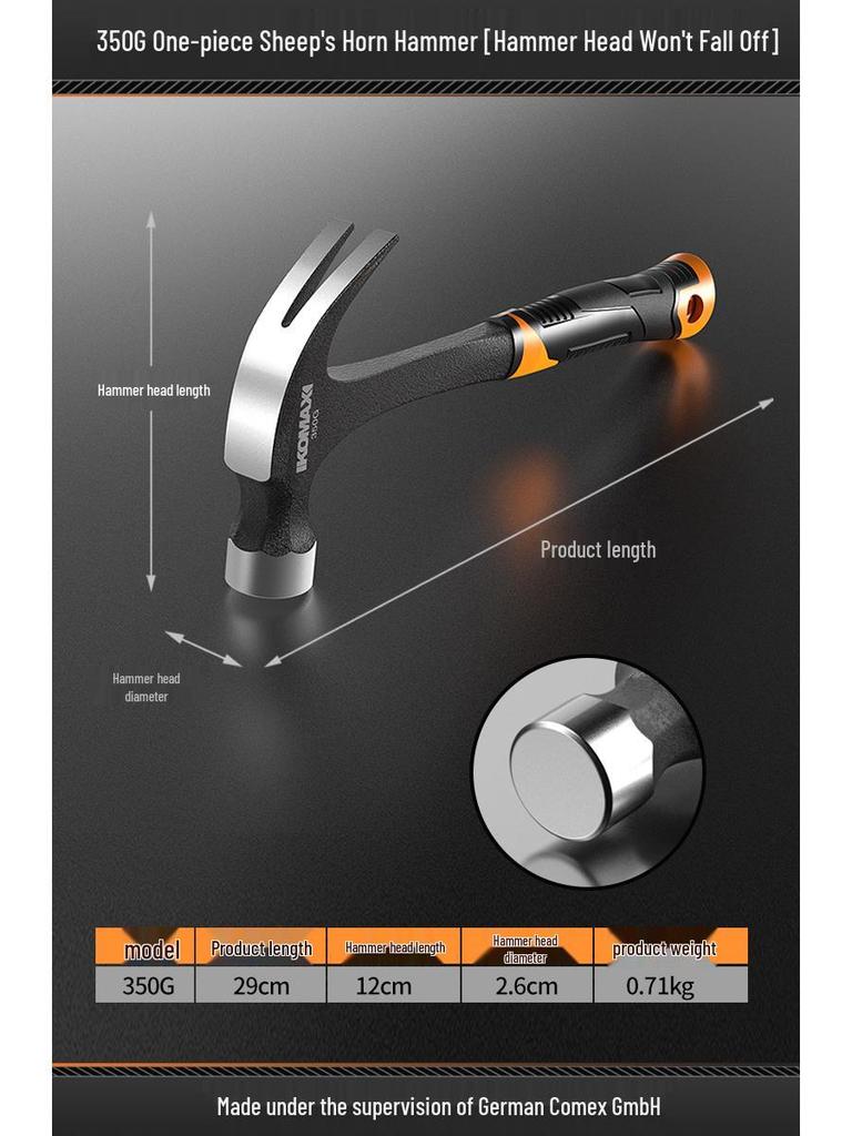 Молоток-гвоздодер для деревообработки: Цельный железный, ручной работы мини-молоток, специальная сталь, идеально подходит для бытового использования.