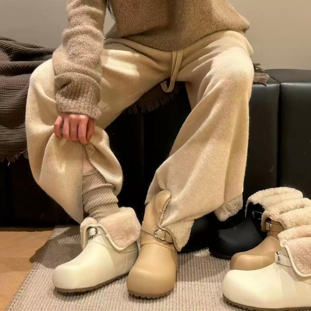 Женские мягкие эластичные шлепанцы-трансформеры с толстой подошвой, зимние меховые, теплые, с холодной подкладкой, нескользящие, износостойкие, повседневные спортивные хлопковые ботинки
