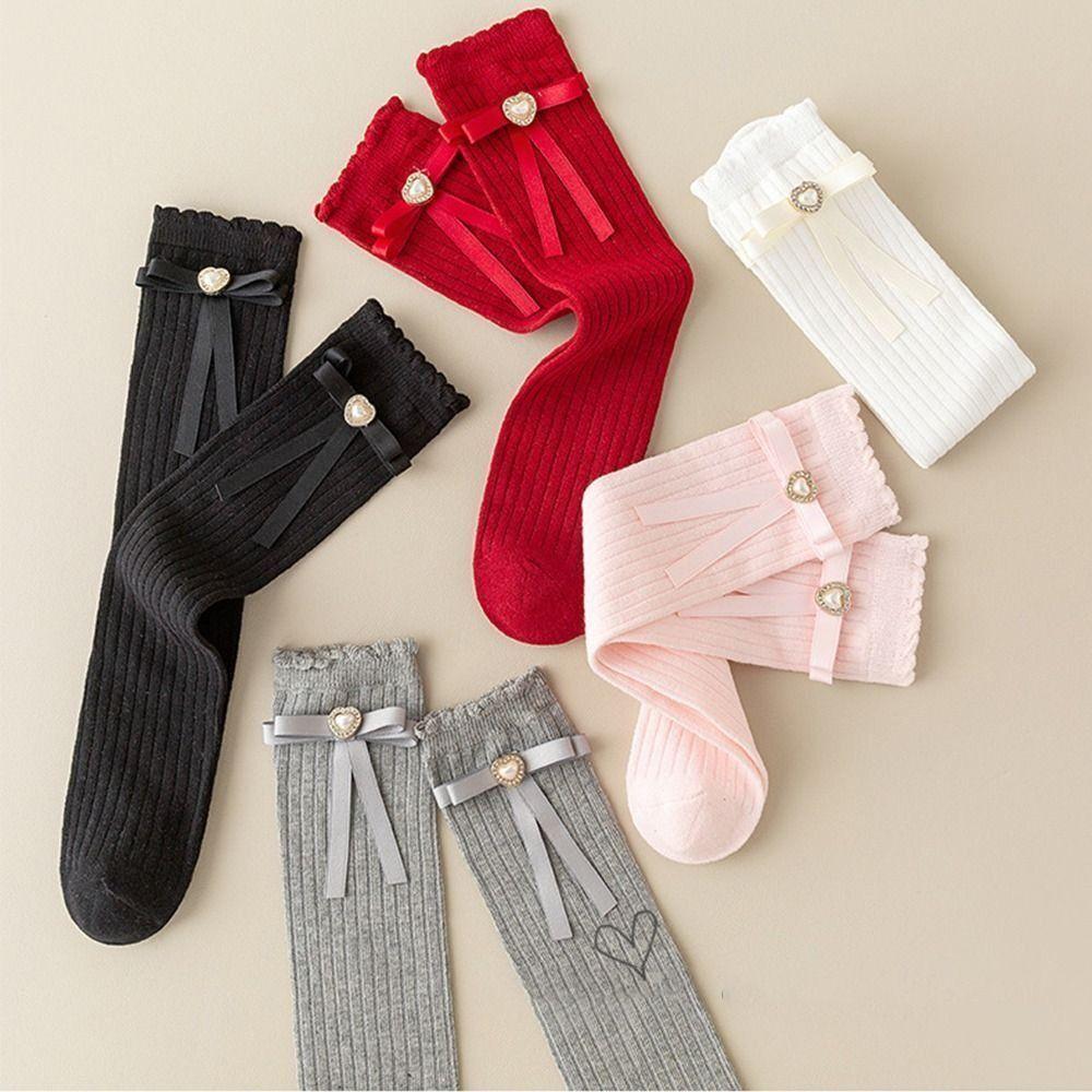 Cotton Children's Mid-calf Socks Red Children Mid-Length Socking Sweet Girls Socks New Year