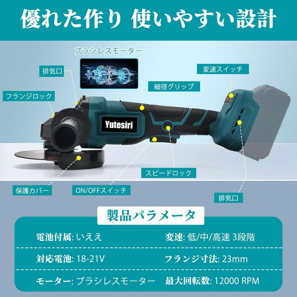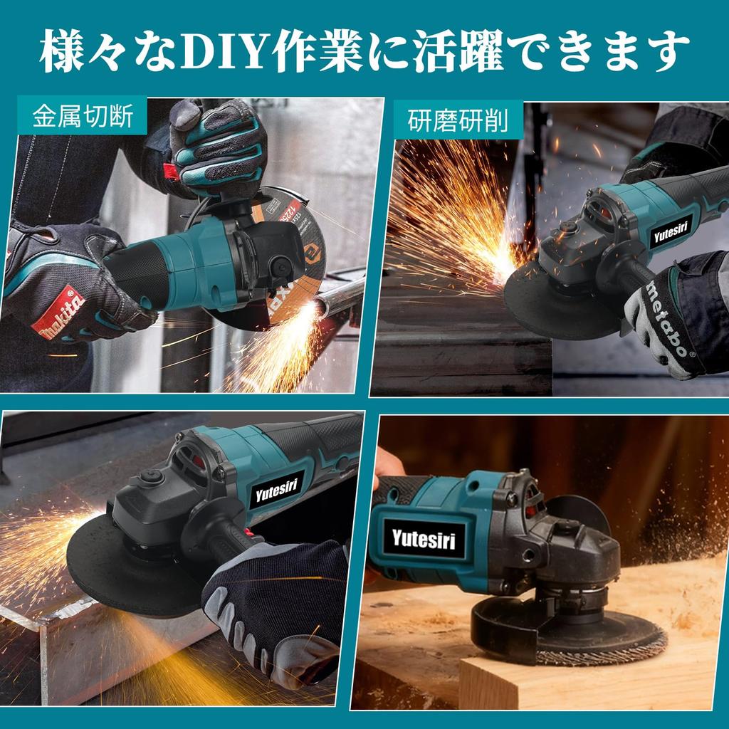 [Brushless Motor] This cordless grinder is equipped with a durable brushless motor. It is more efficient than conventional brush motors and can withstand long periods of use, such as polishing and continuous work. It has a longer lifespan due to less wear from friction and heat generated during operation. No brush replacement or maintenance is required. It is ideal for processing tasks such as polishing, cutting, and grinding metal, wood, and plastic.