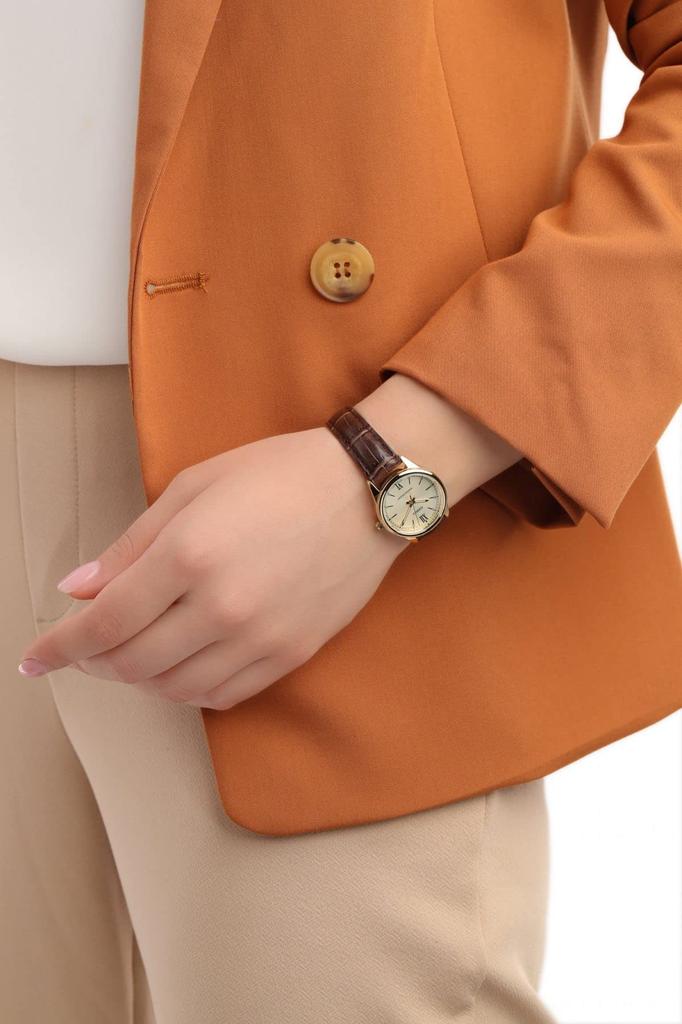 Casio LTP-V005GL-9B Женские стандартные аналоговые часы-платье с кожаным ремешком золотистого цвета