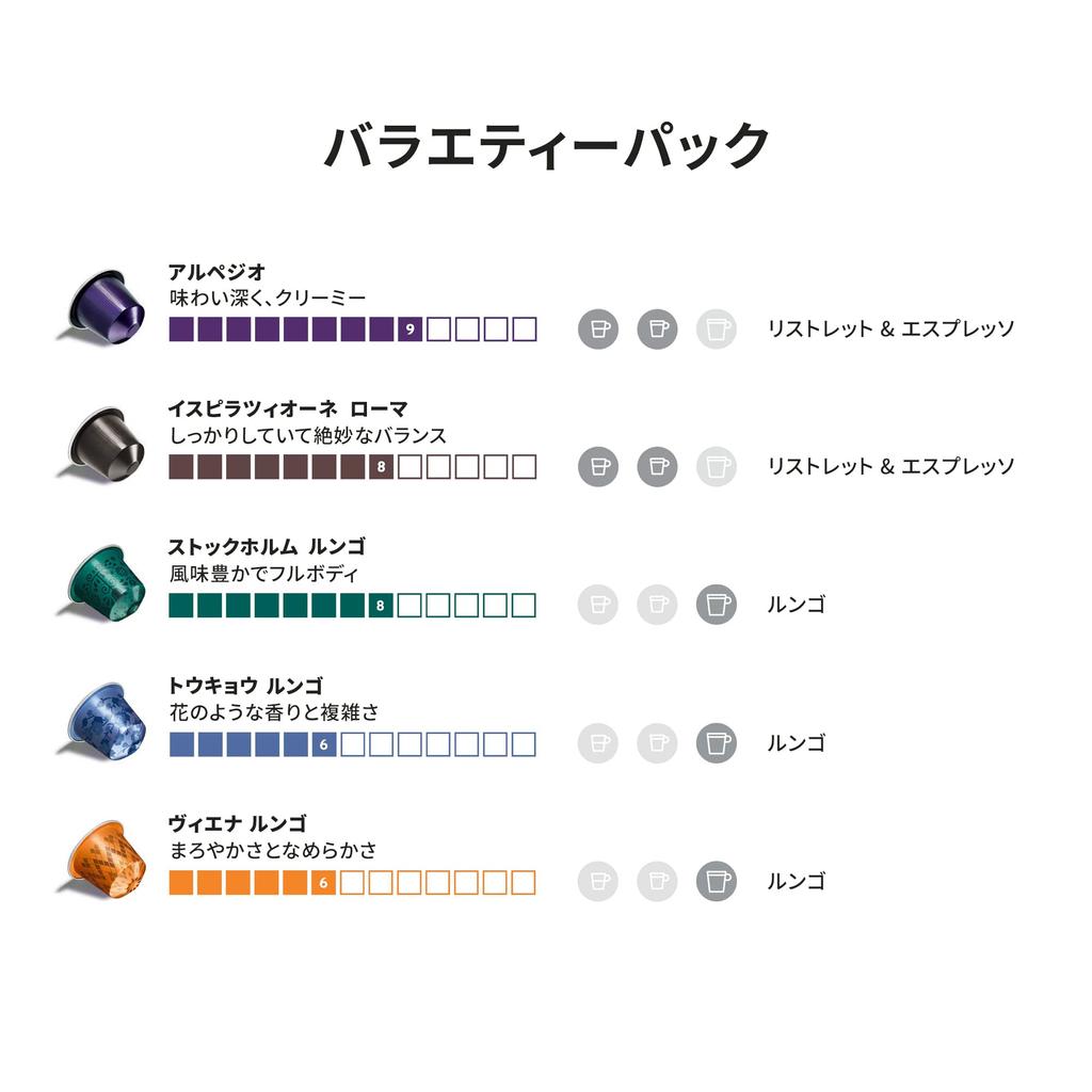 [Официальный Nespresso] Популярный кофейный набор Nespresso 5 вкусов (50 чашек) Оригинальные капсулы RO-E05K01
