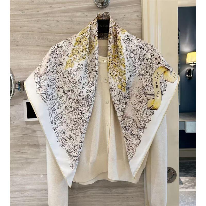 NINA SOLOR Lucky Star Flower Vine Silk Scarf