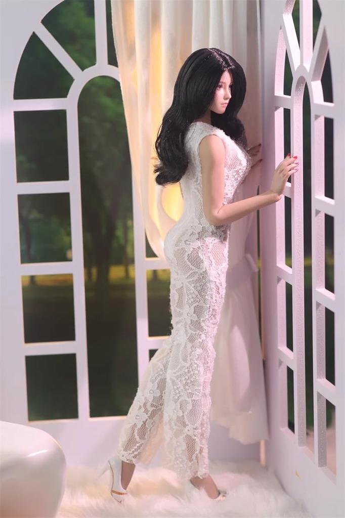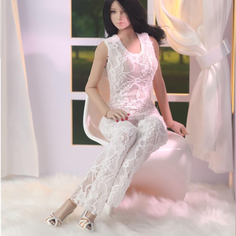 1/6 Сексуальное платье, 1/6 Масштабное женское сексуальное платье с кружевными вырезами, Женский кружевной комбинезон, Белый (Голова и тело не включены)