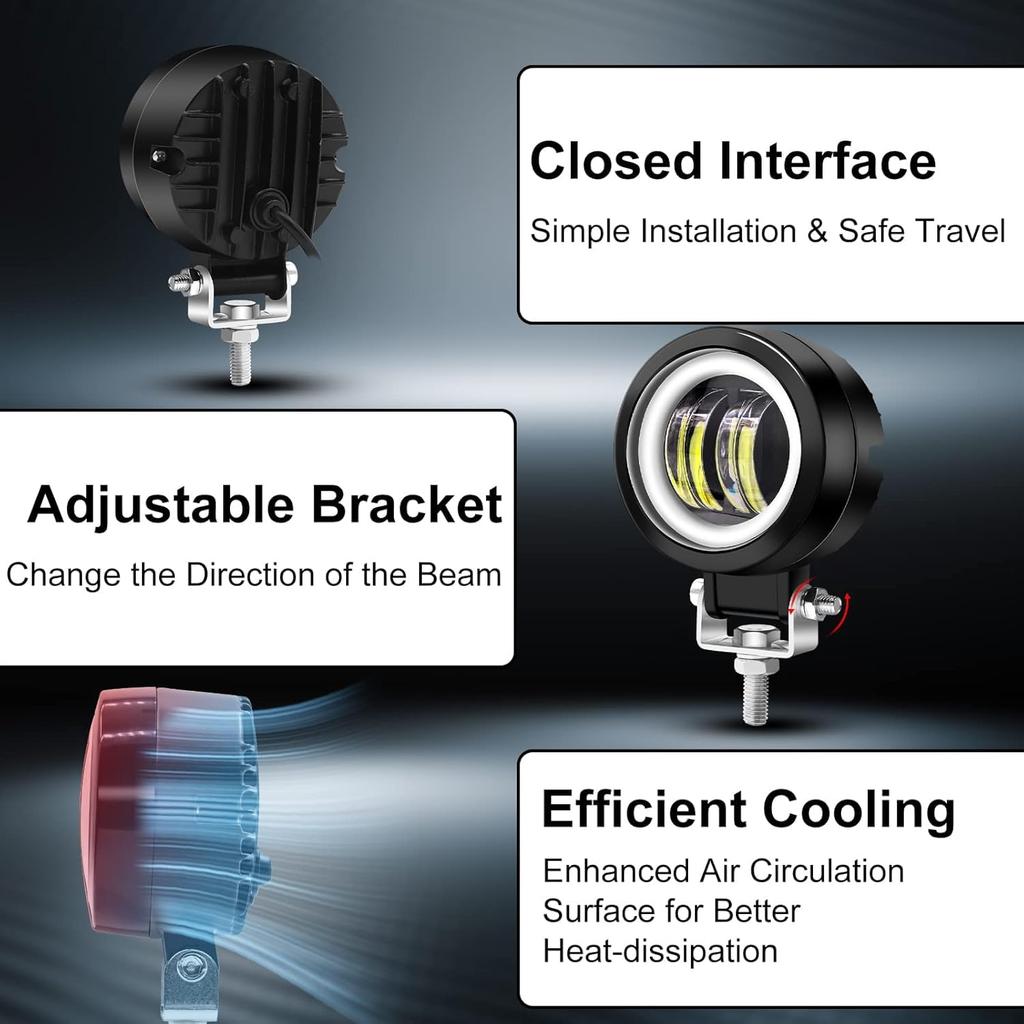 Противотуманные фары для мотоцикла Biqing с линиями отсечки, 12 В/24 В, светодиодные, водонепроницаемые IP68, вспомогательный свет, срок службы 50 000 часов (Белый + Янтарный)