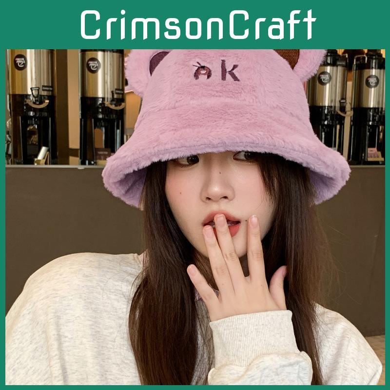 Ухо Ок Медведь Вышивка Букв Плюшевая Панама Ведро Шляпа Защита от Солнца