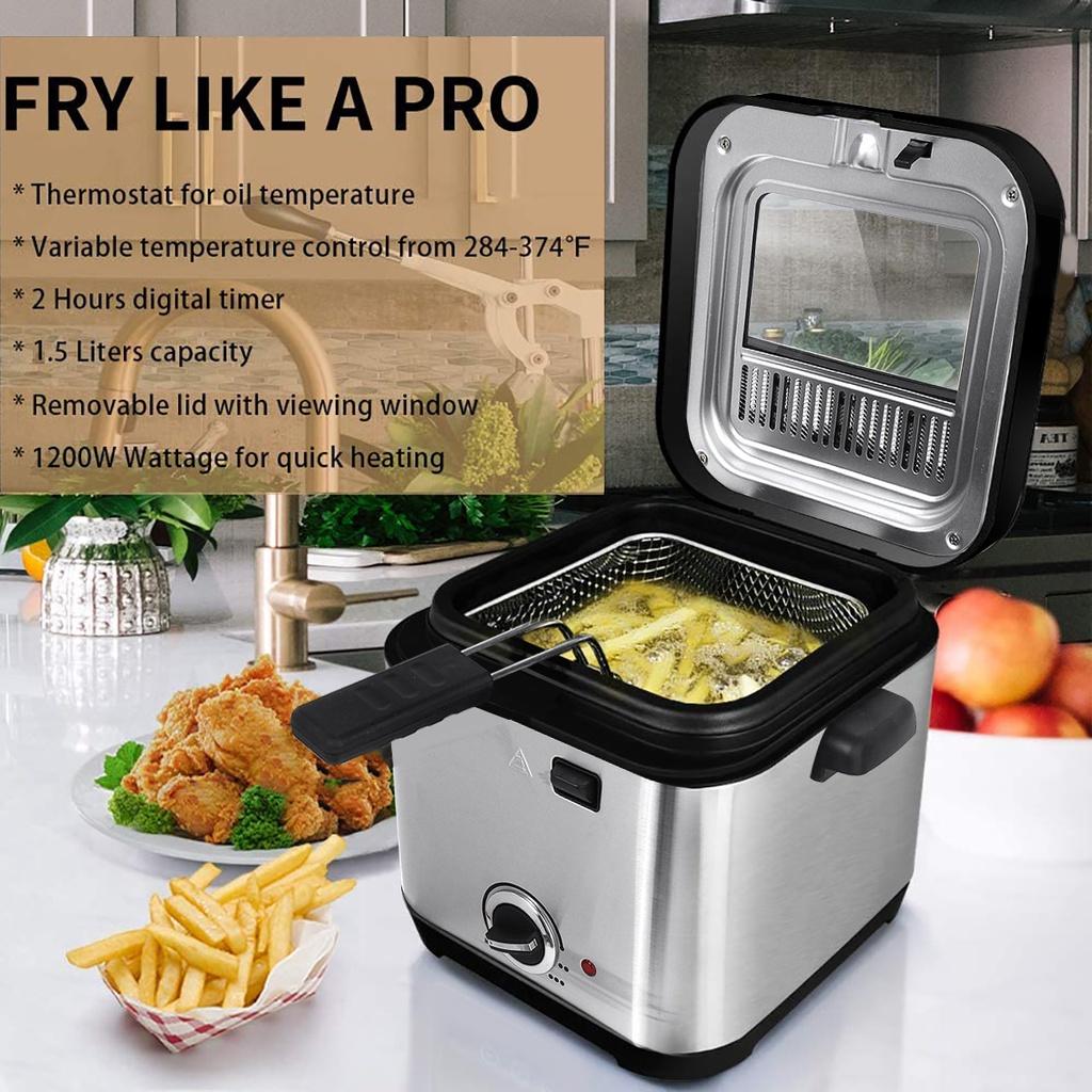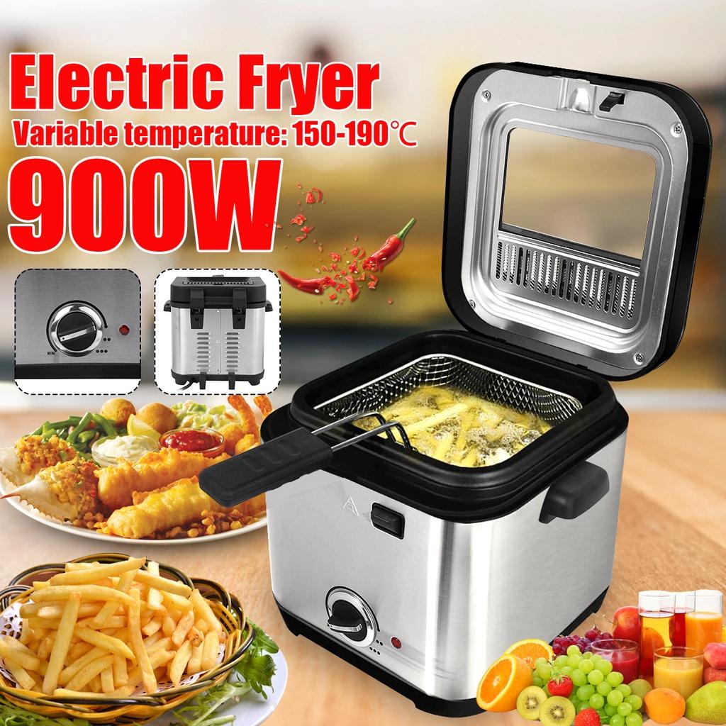 900 Вт Фритюрница для картофеля фри 220-240 В 1,5 л Духовка Горячий горшок Жареная курица Гриль Регулируемый термостат Кухонная кулинария Электрическая фритюрница