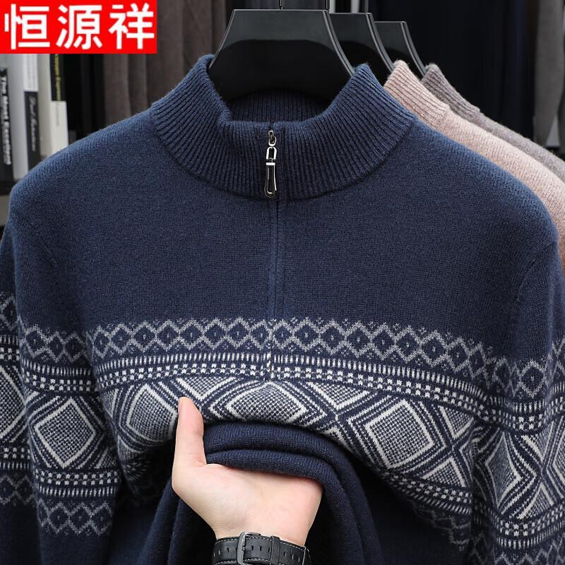 Hengyuanxiang Мужской пуловер из 100% чистой шерсти с молнией и воротником-стойкой