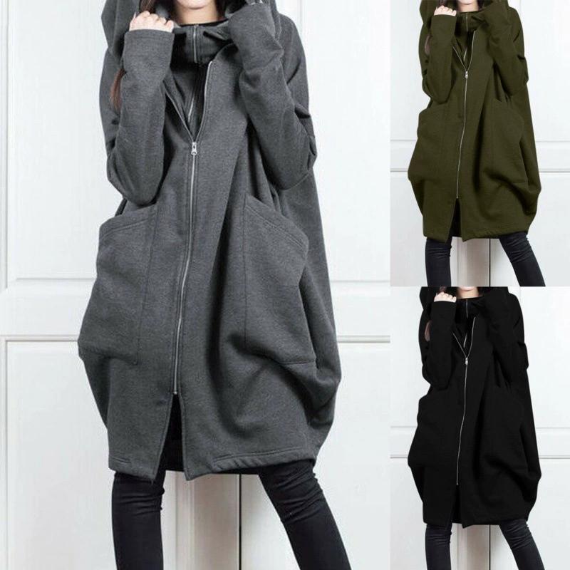 Худи с капюшоном и карманами на молнии средней длины, свободная куртка-двойка для женщин