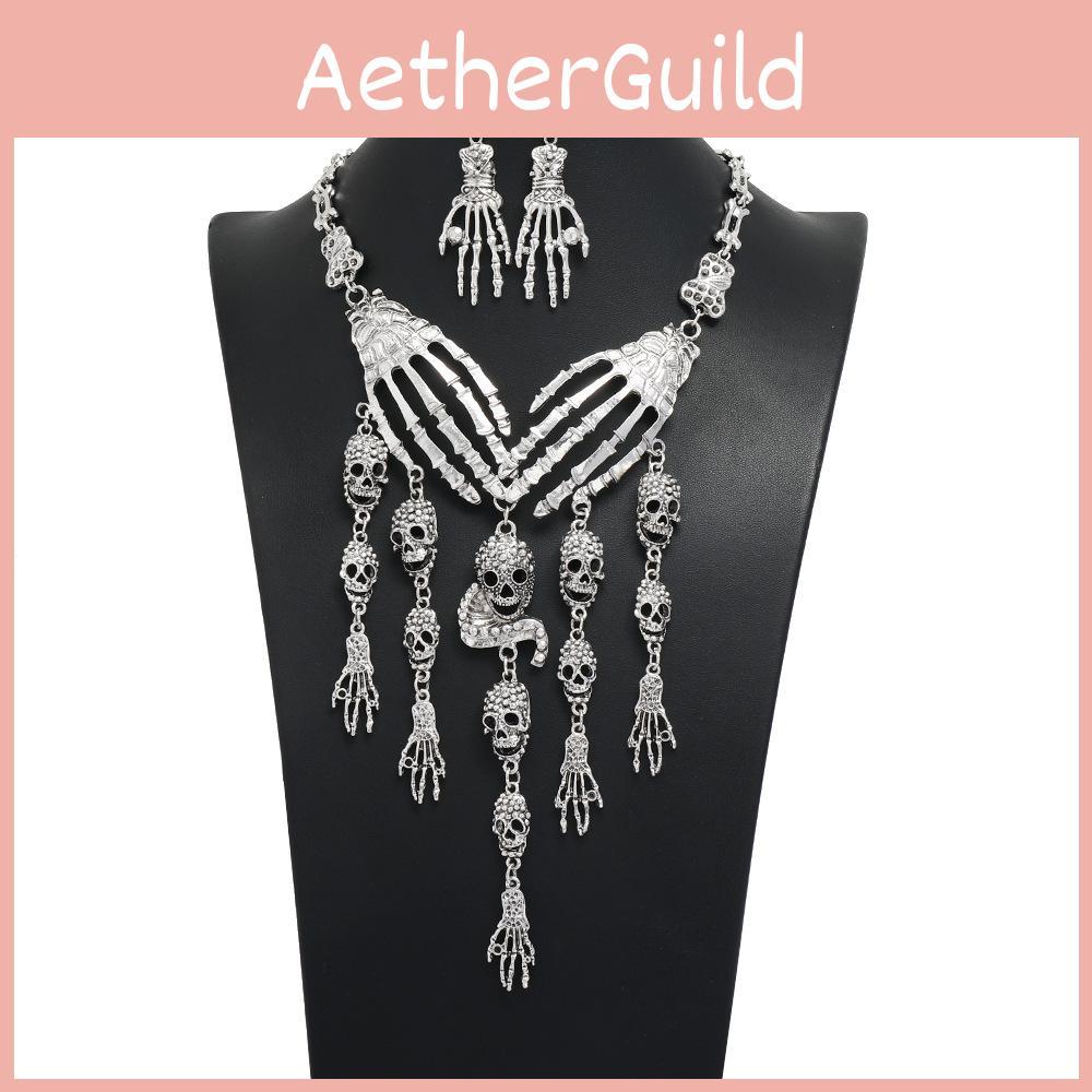Ручная работа Мода Кость Женское Колье и Серьги Набор со Скелетным Дизайном Бахромы