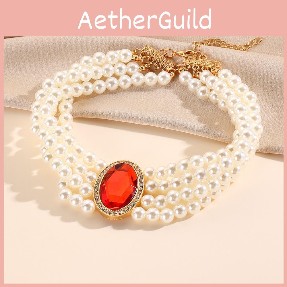 Дворец Элегантное Многослойное Ожерелье Аксессуар для Шеи из Имитации Жемчуга и Драгоценных Камней
