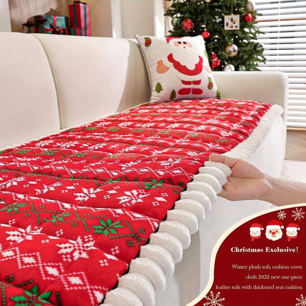1 шт. Плюшевый стеганый чехол на диванную подушку с рождественской снежинкой и кабельным узором - Толстая текстура, похожая на молочную