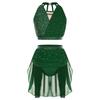 Женский костюм для танца поклонения, платье с длинным рукавом и асимметричным подолом, контрастный цвет, комплект брюк-палаццо