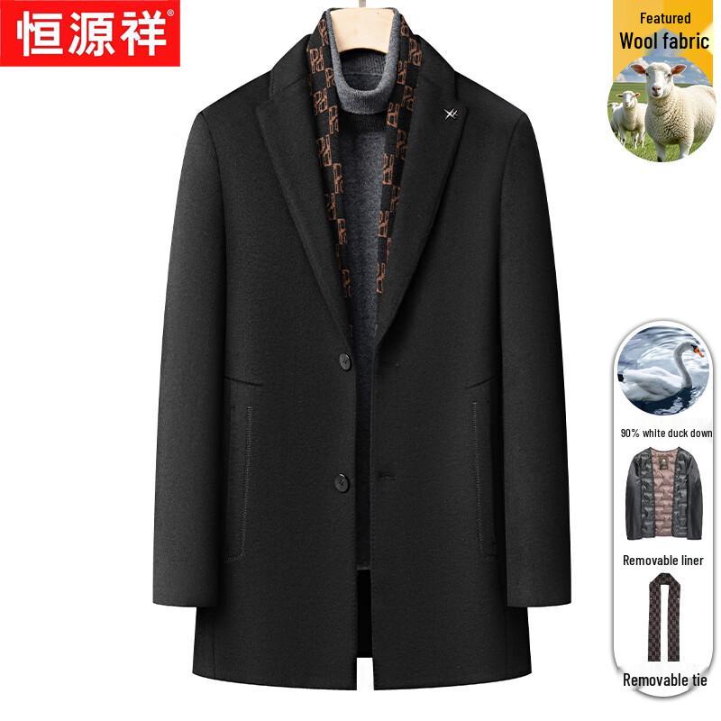 Hengyuanxiang Мужское двустороннее шерстяное пальто со съемной подкладкой