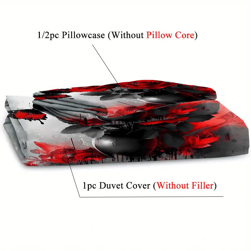 Red Rose Butterfly Pattern 3D Printed Quilt Cover Elegant Beauty Style Bedding Set Luxury Home Textiles Duvet Cover Pillowcases