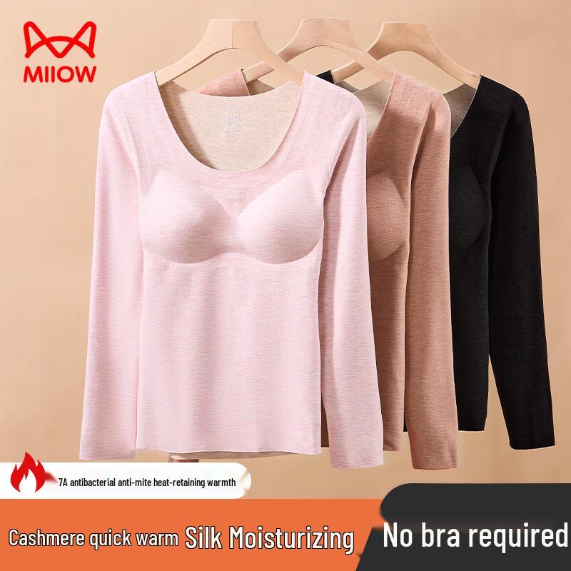Женский термотоп с длинным рукавом MHR из девелюрового кашемира и шелка со встроенным бюстгальтером