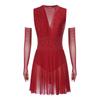Женское платье для фигурного катания, длинные перчатки, без рукавов, с блестящими стразами, с вырезом на спине, юбка-купальник