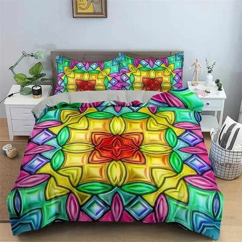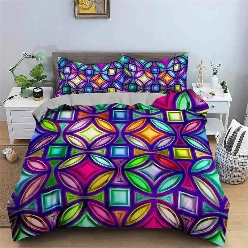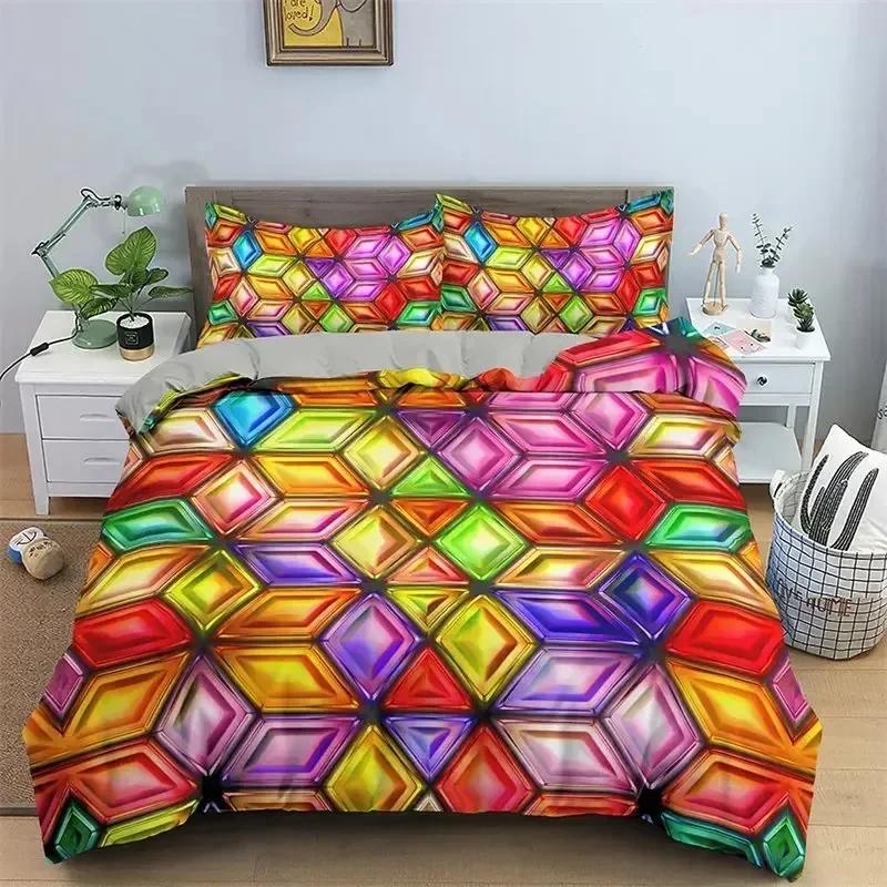 Top Abstract Geometric Duvet Cover Microfiber Queen Bedding Set Boys Kids Room Rainbow Plaid Print Quilt Cover With Pillowcase