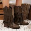 Винтажные ботинки с кисточками 2025 Зима Новые Ботинки Вестерн Миди на молнии с острым носком больших размеров с заклепками — купить товар онлайн с бесплатной доставкой по всему миру!