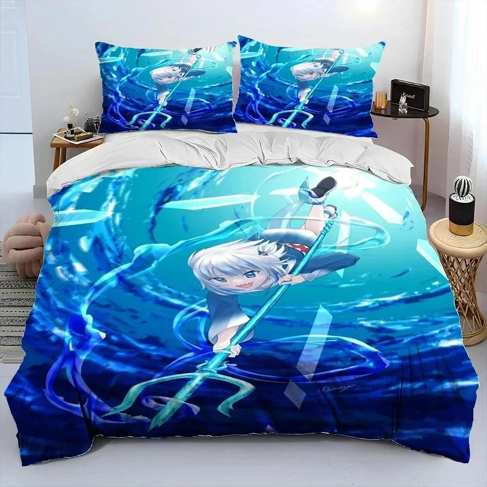 Милый Гавр Гура Хололайв Аниме Акула Постельный комплект с принтом Комплект для кровати с наволочкой Пододеяльник Мягкое Постельное белье Квинсайз Кингсайз Дом