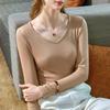 Женская футболка с длинным рукавом, весна-осень 2025, новая женская одежда, футболка с V-образным вырезом, базовая, рубчик внутри, модный однотонный топ