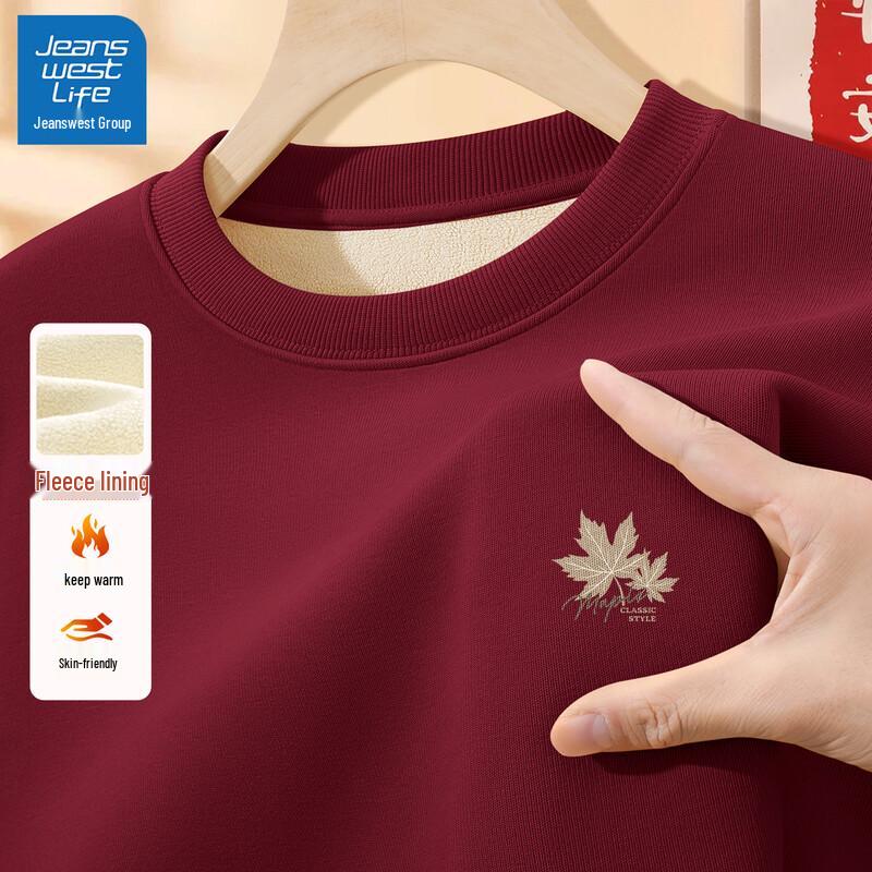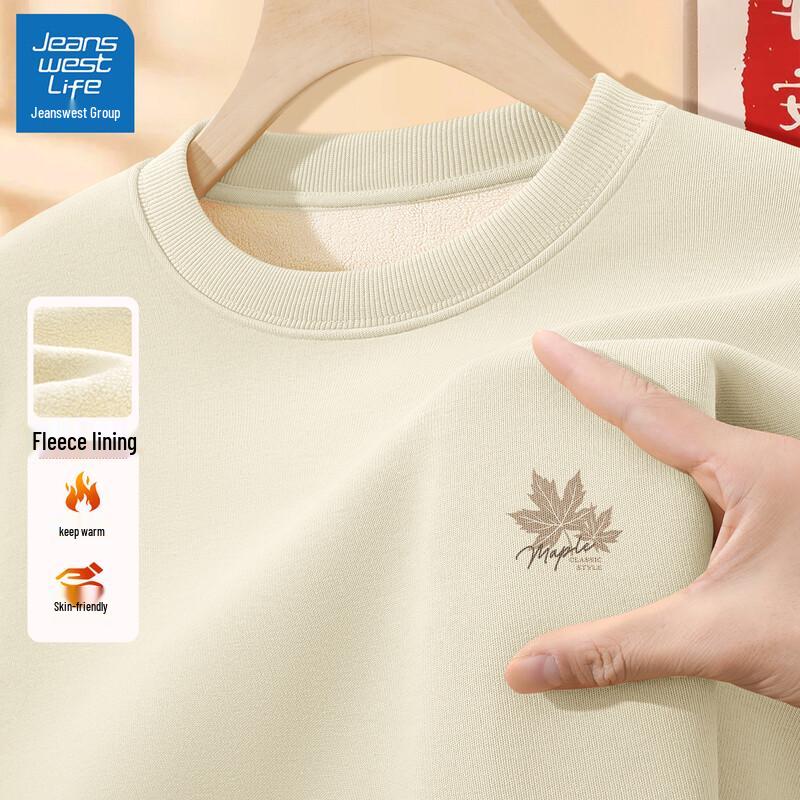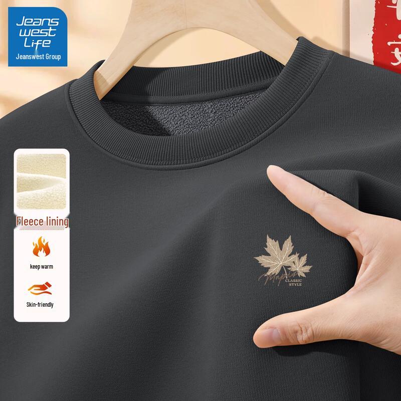 Jeanswest Men's 2025 Winter Plush Lined Crewneck Sweatshirt