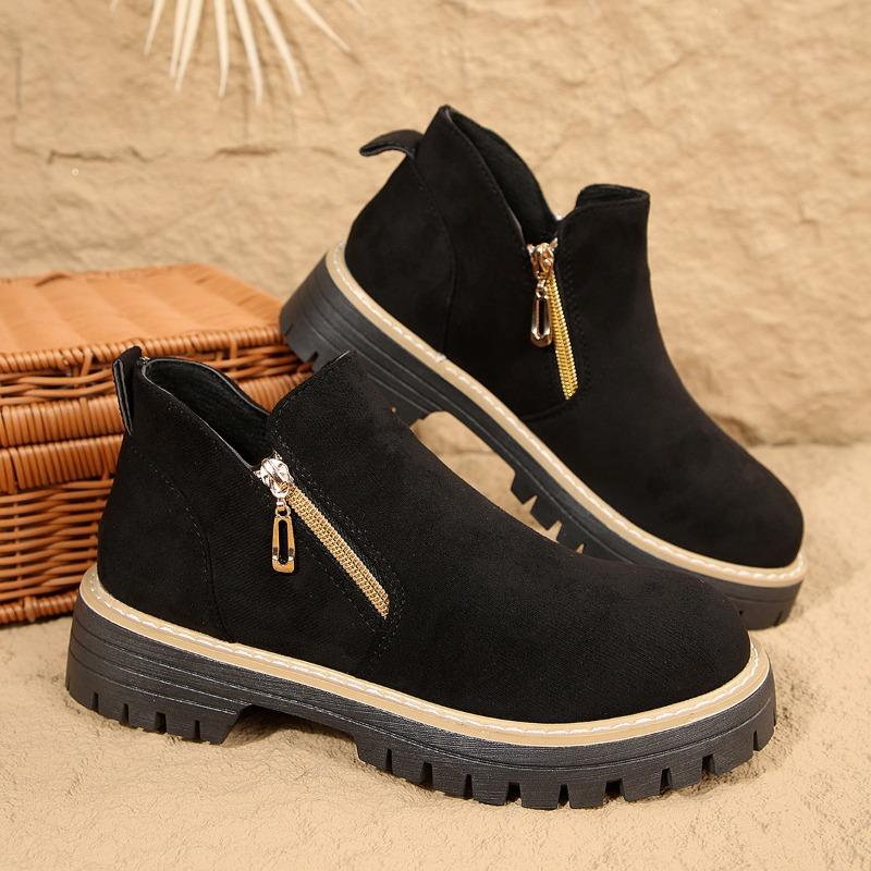 Внешняя торговля новые большие размеры двойная молния платформа ботинки Мартин женские трансграничные короткие голенища круглый носок замша толстый каблук и ботильоны